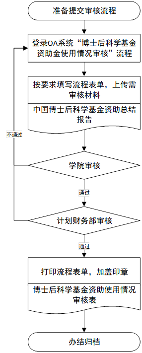 2.流程办结后,打印《博士后科学基金资助使用情况审核表》到学院路校区办公楼A235房间加盖印章。